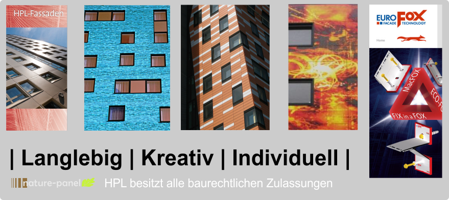 Bauenergetische Sanierung und Wärmeschutz sind wichtige Bausteine zur Energieeinsparung von Gebäuden und Wohnanlagen. HPL hat eine sehr gute Schalldämmung, lässt sich mittels Befestigungssystemen sehr schnell verarbeiten, ist pflegeleicht, benötigt keine Nachbehandlung und lässt Ihnen jede gestalterische Freiheit.